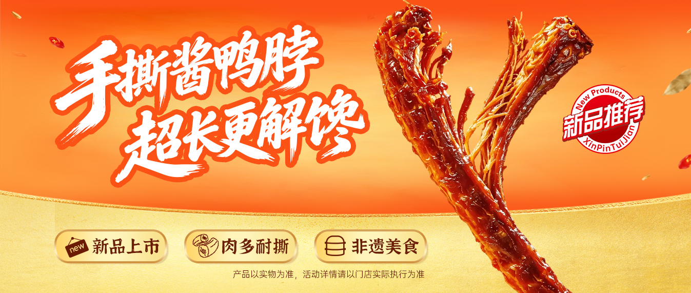 独特工艺,蒸汽卤制,酱卤收汁,锁住营养。28种植物香辛料,酱香鲜辣,缔造全国特色风味酱鸭。
